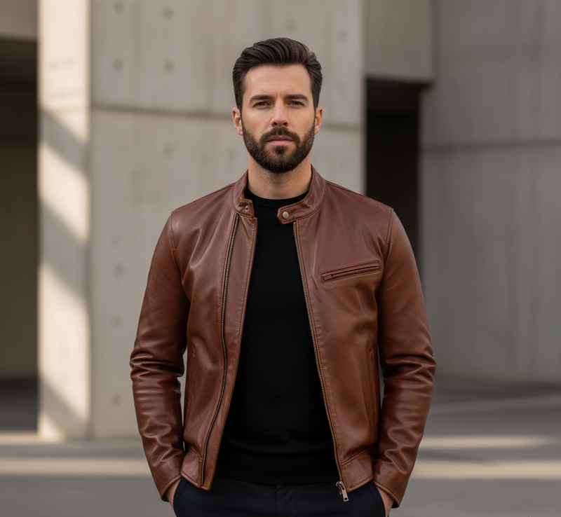 Men’s Cognac Brown Café Racer Leather Jacket | NSM Jackets