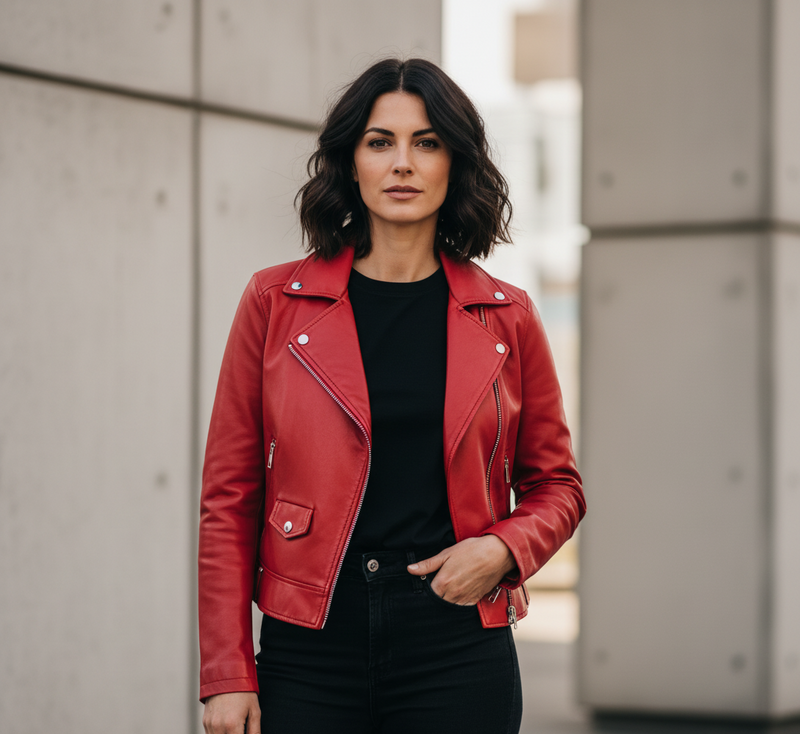 Women’s Red Biker Leather Jacket | Real Sheepskin | NSM Jackets